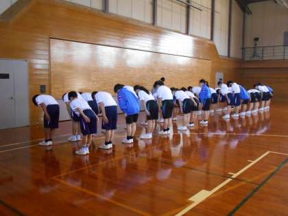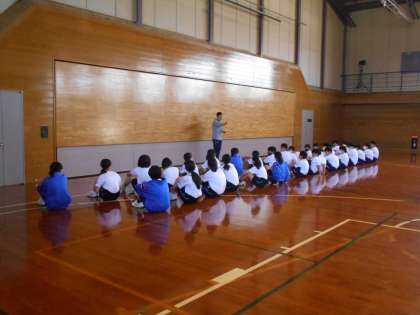保健体育の授業では、集団行動の練習をしています。号令に合わせてきれいに並ぶ。うまくできたでしょうか。