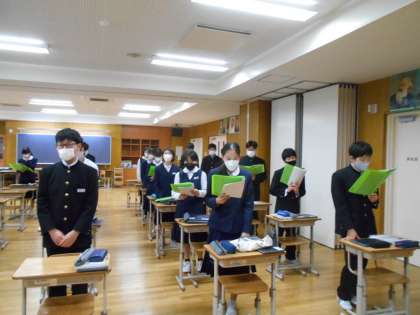 音楽の授業では、校歌の練習をしていました。3年生といえども、これまで歌った回数は少ないはずです。今年はぜひ高らかに歌いましょう。