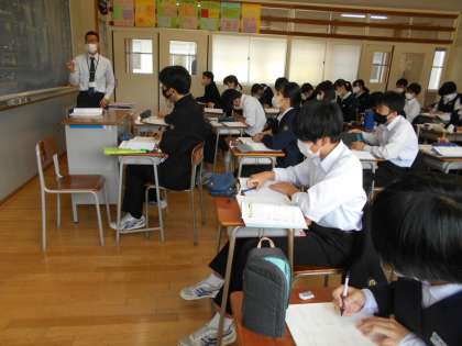 数学の授業では、公式を使って色々な式を展開することに取り組みました。まずは、公式を正しく覚えていることが大切ですね。