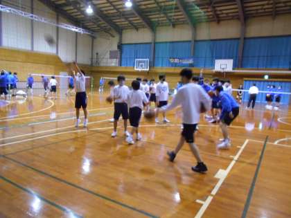 バスケットボール部とバドミントン部は、人数が多いため、練習場所を交代しながら使って取り組んでいました。