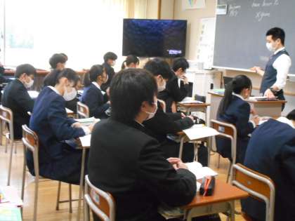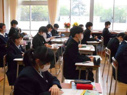 英語の授業では、現在完了「have been」の表現を勉強しました。3年生になると、どんどん表現の幅が広がります。