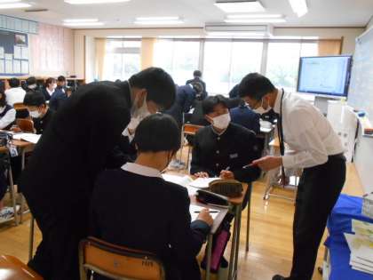 数学の授業では、多項式を文字に置き換えて式を展開することを勉強しました。分からないところは先生や仲間に聴きながら、進めていました。