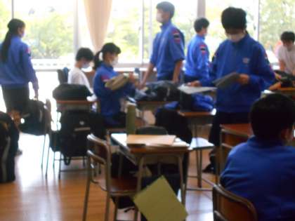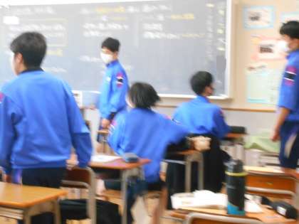 保健体育の授業では、50m走のタイムを計ったそうです。残念ながら終わった後の様子しか撮れませんでした。