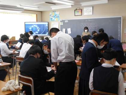 昨日、しおりの読み合わせをしながら、3日間の動きを確認しました。JRの座席やホテルの部屋割りをしおりにメモしているクラスもありました。