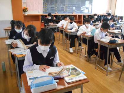 社会の授業では、小学校で学んだ歴史上の人物について、資料集の中で見つけながら復習しました。