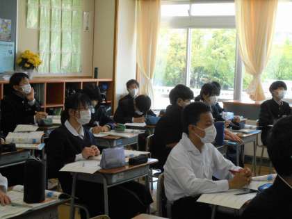 理科の授業では、水の電気分解、要請と陰性の見分け方等を勉強しており、先生の話を興味深そうに聴いていました。