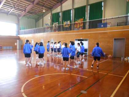 保健体育の授業は、体育館でハンドボール投げの測定をしました。男子の全国平均は21m、女子は13mだそうです。平均と比べてどうだったでしょうか。