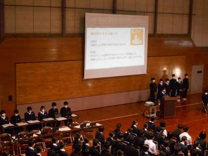生徒会執行部、専門委員会、学年生徒会から前期の活動について説明と、学級討議で挙げられた質問に対する応答がありました。