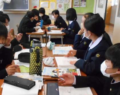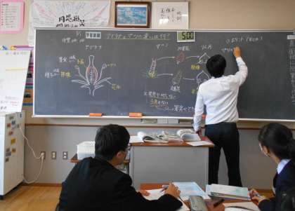 理科の授業では、アブラナとマツの違いは何か、つくりの違いに注目しながら考えていました。