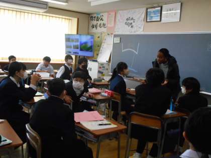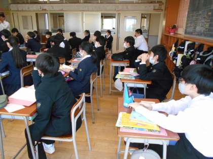 英語の授業では、新しいALTの先生の自己紹介を聴き、積極的に質問をすることで、先生に親近感をもつことができました。