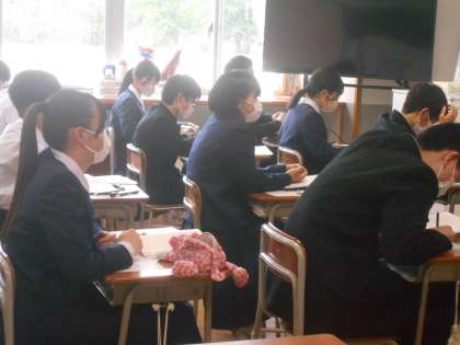 国語の授業では、「握手」を読んで、出会い、再会、別れの3回の握手にどのような思いが込められているのか読み取りました。