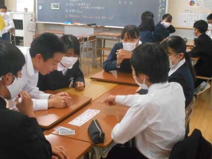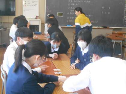 学活の時間にグループになってゲームをしているクラスがありました。質問の内容から答を考え、好きな度数を数字で正しく並べるといった内容です。しかし、数字は仲間には見せられない。難しいけれどコミュニケーションが生まれ大盛り上がりでした。