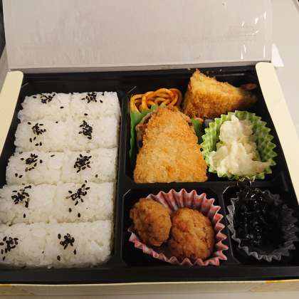 広島行きの新幹線のぞみに乗りました。配られた昼食をすぐに食べ始めました。朝早かったので、お腹が空いていたようです。