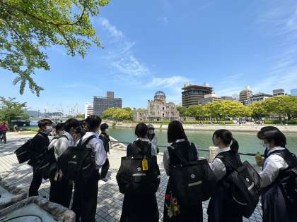 広島平和記念公園での碑めぐりで、原爆ドームを実際に見て、原子爆弾の悲惨さやその衝撃の大きさを学びました。