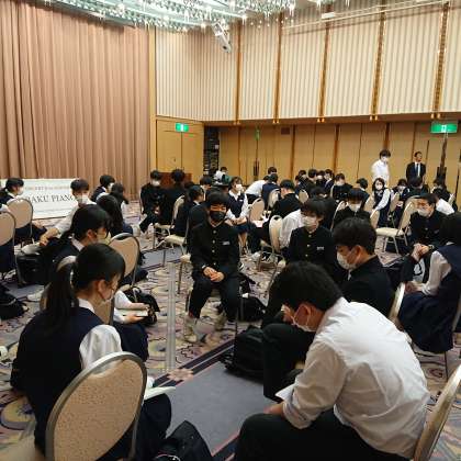広島市交流文化会館に移動し、平和のつどいを行いました。碑巡りで感じたことをグループごとに話し合った後、各クラス代表者が感想を発表しました。