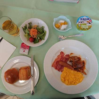 朝食のメニューです。みんな元気に食べ始めました。