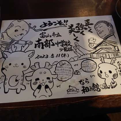 1組と4組の昼食は、和み館でいただきました。温かいメッセージが書かれたシートが用意されており、一同感激でした。