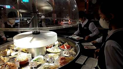 海遊館コースの夕食です。串カツ食べ放題です。見ているとお腹が空いてきました。