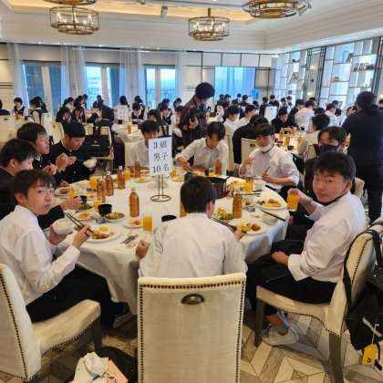 修学旅行3日目ですが、みんな元気に朝食を食べています。あと1日頑張りましょう。