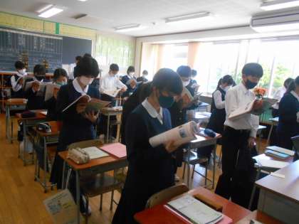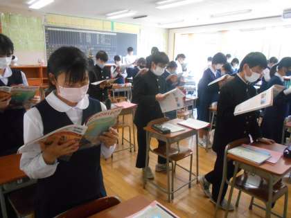 英語の授業では、本文の音読練習を頑張りました。スピードも意識して練習していました。