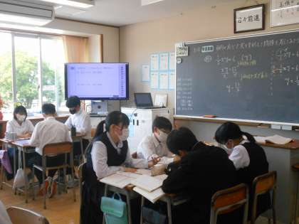 数学の授業では、目的に応じて式を変形して問題を解くことに取り組みました。基礎を生かし応用できるかどうかにチャレンジです。