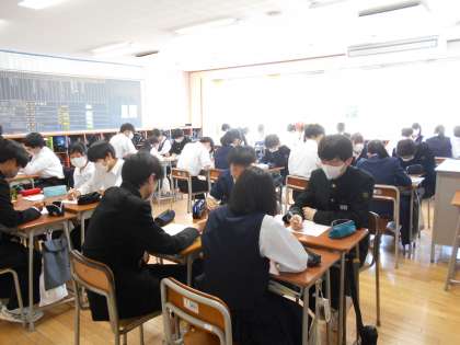 今日のNTでの学び愛は、班長会で作成したスタディプリントに挑戦しました。クラス全体にヒントと伝えたり、解説したりしているクラスもありました。