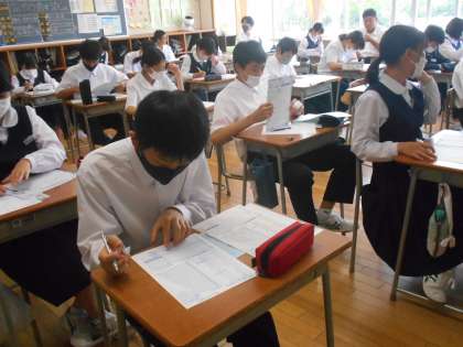 保健体育の授業では、体力テストをマークシートに書き写し、提出する準備をしました。昨年に比べて、どのくらい粘り強く取り組めたでしょうか。