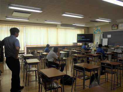 今年度初めて、英語の「話すこと」調査がオンラインで行われました。Wi-Fi環境が不安定な面があるため、少人数で少しずつ進めました。