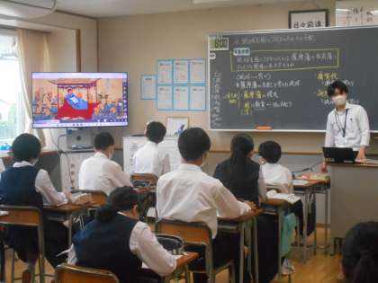 社会の授業では、琉球王国やアイヌの人々は、それぞれ薩摩藩や松前藩とどのような関係にあったのか歴史的事実から考えました。