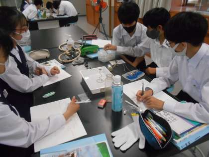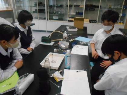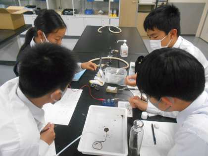 理科の授業では、本当に鉄と酸素はくっつくのか、豆電流が光るかどうかを観察することで調べました。