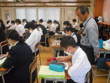 理科の授業では、中和状態のとき、水の中で何ができているのか化学式を書くことによって考えました。