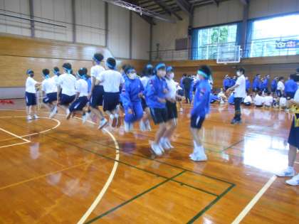 長縄跳びの練習の様子です。こつをつかむまで、練習あるのみです。