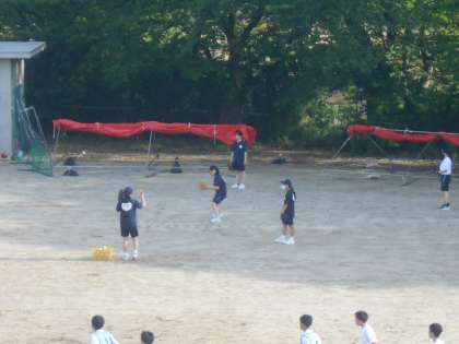 ソフトボール部と野球部の様子です。休憩を取りながら、基本練習に取り組みました。