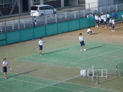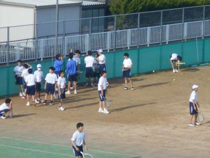 ソフトテニス部は、順番にコートに入り練習をしました。