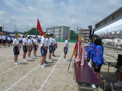 開会式では、司会者のアナウンスによって一通りの練習をしました。本番では、さらにきびきび動く様子を見てもらいましょう。