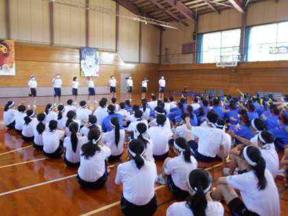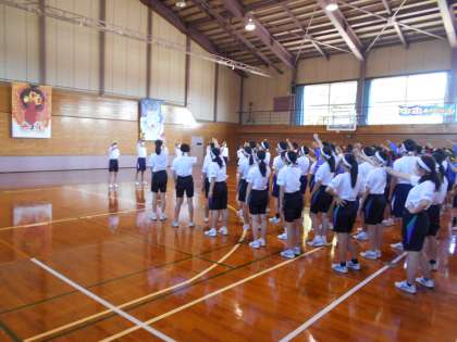 運動会を明日に控えた3年生の学年終礼では、学年スタッフからエールを送りました。その後、団長8人からの「明日頑張ろう!」に、全員で心一つに「オー!」とかけ声をかけて明日の活躍を誓いました。