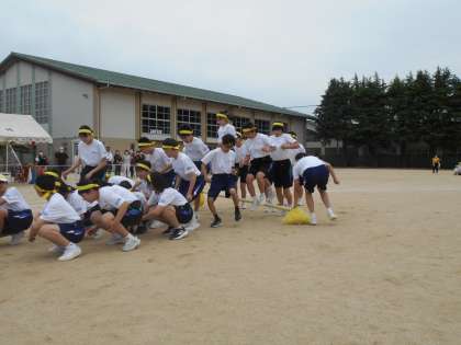 1年生から3年生まで、統率された動きが勝負の鍵。「もっと低く!」など、3年生からの声が飛び交っていました。