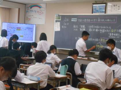 社会の授業では、中国の歴史書から見た倭(日本)の様子について勉強しました。