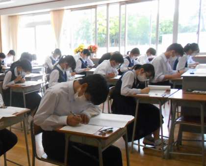 今日は、国語、社会、理科の3教科に取り組みました。さすが3年生。始まる前には余裕をもって着席し、落ち着いてスタートしていました。