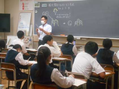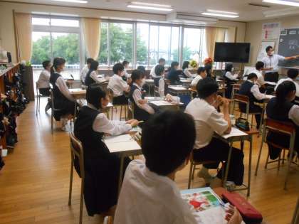 理科の授業では、酸化銅をきれいにする方法について勉強しました。興味深く先生の話を聴いていました。