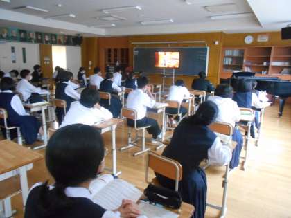 音楽の授業では、パイプオルガンについて説明する視聴覚教材を活用して勉強していました。