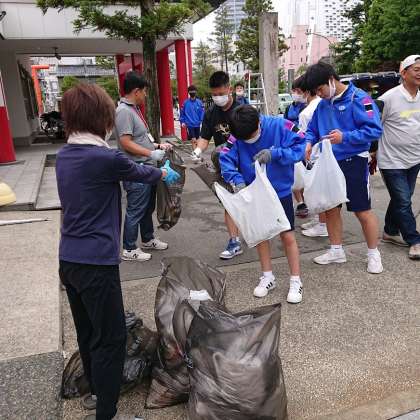 日枝神社に戻って、ごみをまとめて終了です。4年ぶりに開催した今回は、PTA会長様始め会員の皆様にもご参加いただき本当に助かりました。感謝申し上げます。