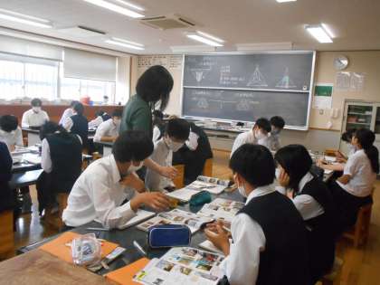 美術の授業では、2点透視図法、3点透視図法に取り組んでいます。いくつも課題に取り組むことで、よりきれいな仕上がりになってきました。