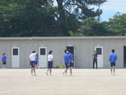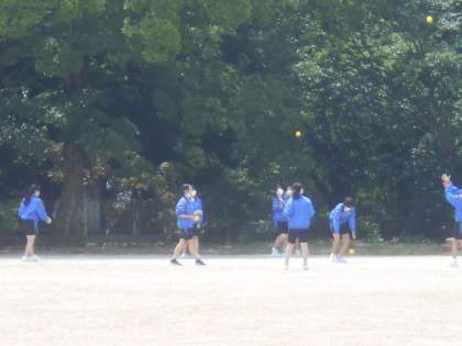 保健体育の授業ではソフトボールに取り組みました。今日はまずボールに慣れることから始めていました。