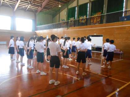 保健体育の授業では、バレーボールに取り組んでいます。今日は、アンダーハンドパスの練習をしました。腕を伸ばす、膝のばねを使うことを意識して10回連続を目指しました。