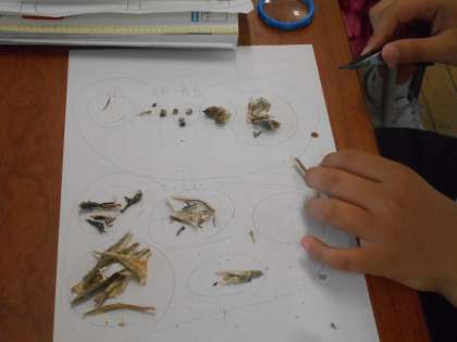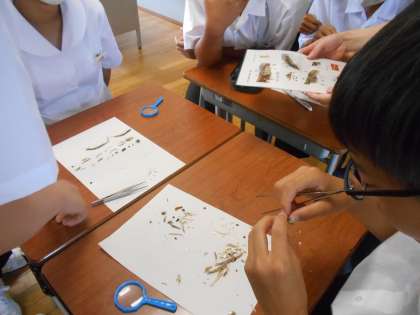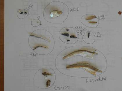 理科の授業では、煮干しを分解して、体のつくりを調べました。細かな作業を丁寧に進め、見事に分類できている人がたくさんいました。