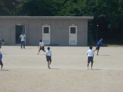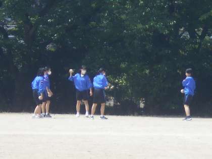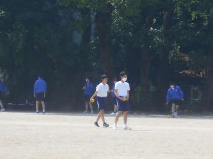 保健体育の授業はソフトボールの練習でした。ボールをバウンドさせてキャッチしたり、ペアでキャッチボールをしたりすることから始めていました。