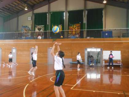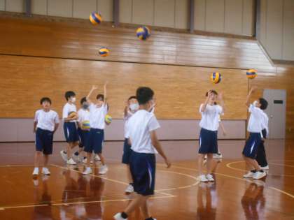保健体育の授業では、バレーボールのオーバーハンドパスの練習をしました。各自で目標回数を決め取り組みました。こつはつかめたでしょうか。