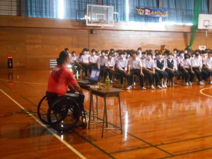 障害を負われながらも、パラリンピック車椅子バスケットボール代表選手として活躍され、東京パラリンピックでは銀メダルを獲得された宮島 徹也さんをお招きして、「命の講演会」を開催しました。