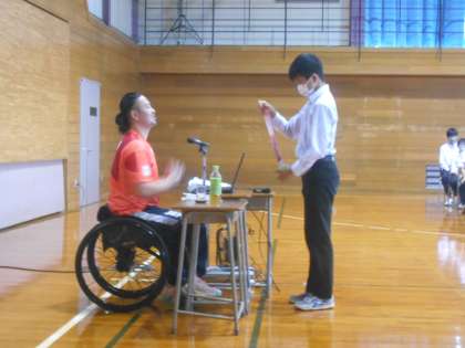 お話の後、質問した生徒には、銀メダルを首にかけさせていただくご褒美もいただき、みんな大喜びでした。